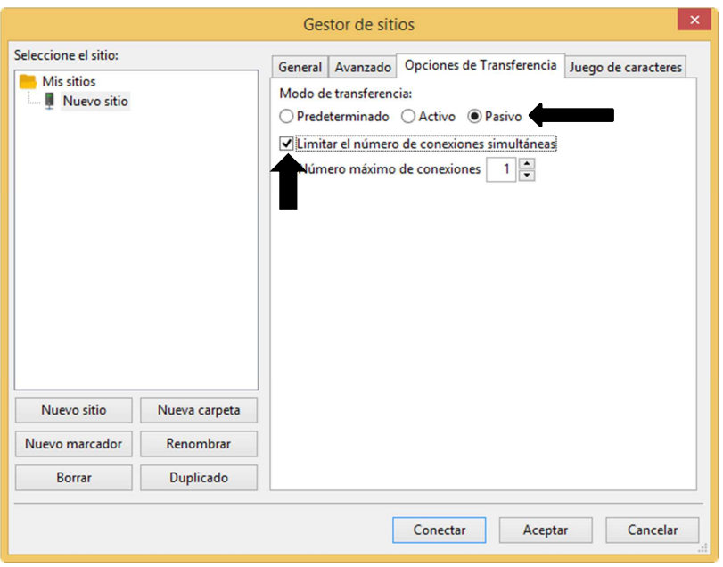 En la misma ventana, entra a la pestaña Opciones de transferencia.