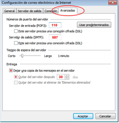 7. Ahora entra en la pestaña Avanzadas y configura los puertos: