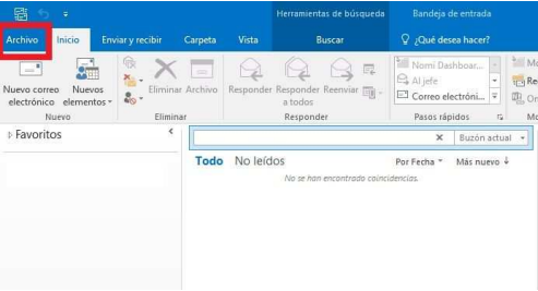1. Abre Outlook 2016 y haz clic en Archivo.