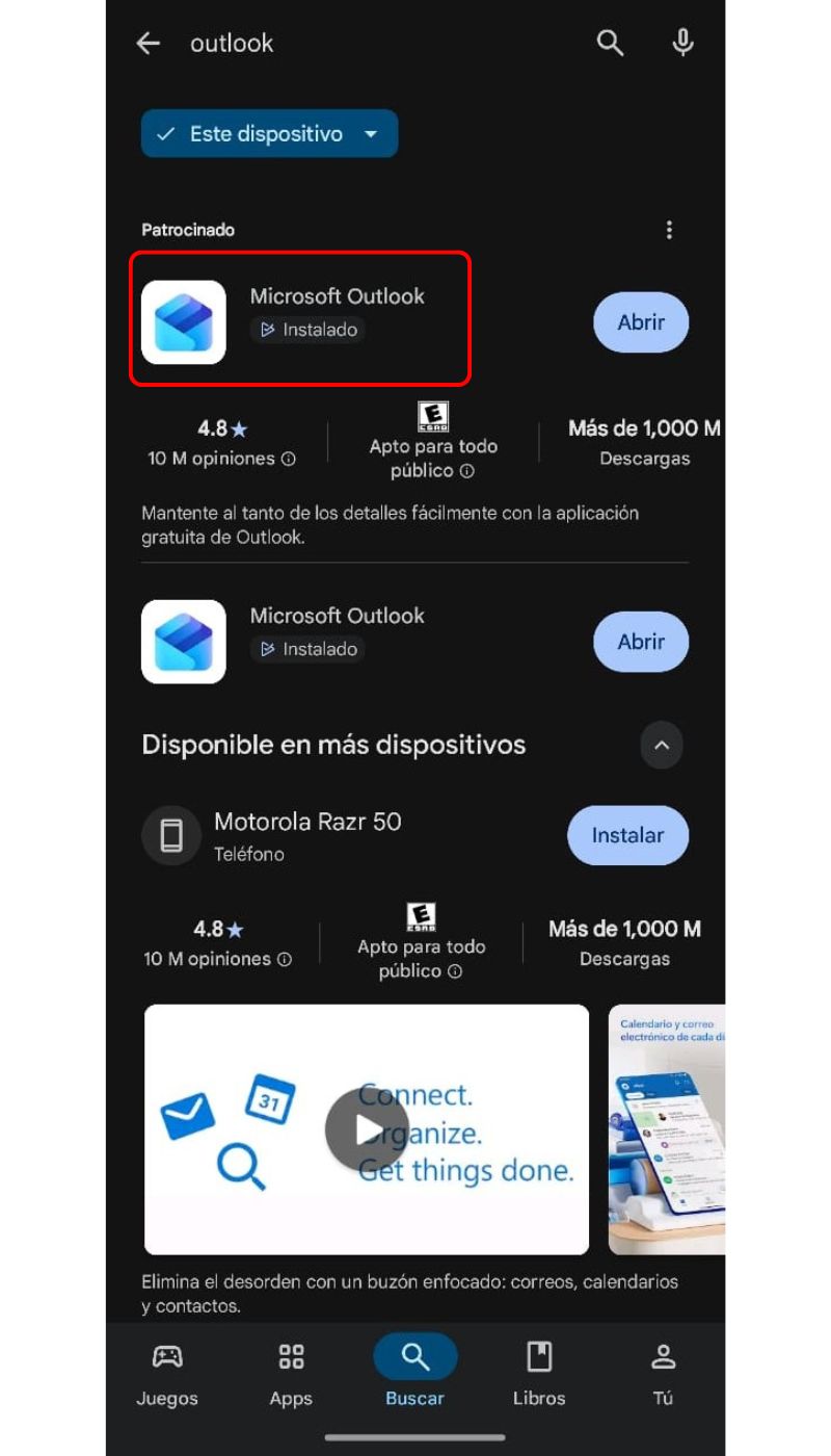 3. Instale la aplicación Microsoft Outlook.